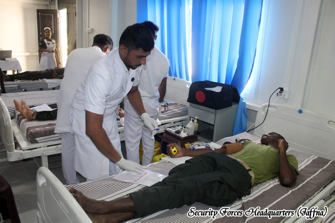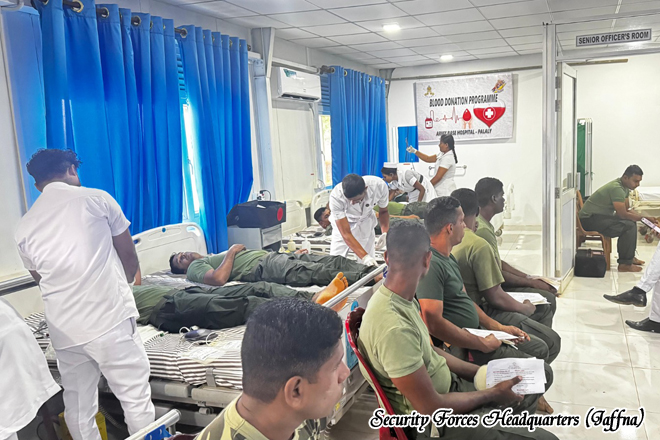 Army Base Hospital, Palaly, together with its staff, conducted a blood donation programme on 22 November 2025 to mark the continued commitment of the Sri Lanka Army towards humanitarian service, under the guidance of Major General KAN Rasika Kumara ndc psc, Commander Security Forces (Jaffna), with the coordination and supervision of Major (Dr) PLAA Lekamge, Commanding Officer, Army Base Hospital Palaly.
