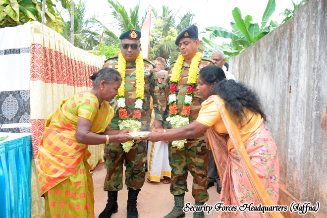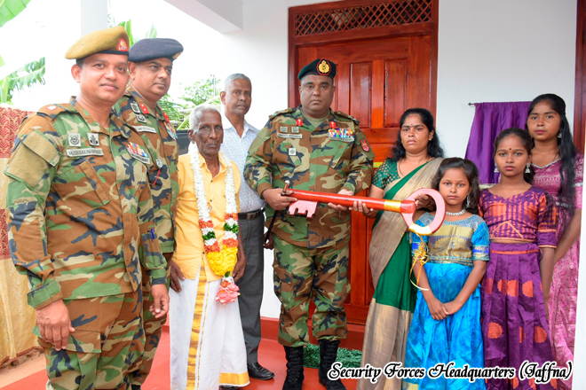Under the Civil Military Cooperation (CIMIC) programmes, the 51 Infantry Division under the Security Forces Headquarter (Jaffna) continues to make meaningful strides in supporting to uplift living standard of low income families in Jaffna. Under the strategic direction of Major General MPNA Muthumala USP psc, General Officer Commanding 51 Infantry Division, a special community outreach effort was recently held to empower under privileged living stranded. The event, supervised by Commander 511 Infantry Brigade, Brigadier KD Gothatuwa RWP RSP and executed with the dedicated support of the 15th Battalion Sri Lanka National Guard troops, included the ceremonial vesting of a newly constructed house on 18th August 2025 at J/203 Earlalai (South), Mylankadu to a low income family, held on 8th August 2025 offering a fresh start and renewed hope.