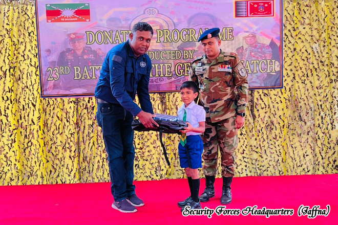 Based on a concept of the Commander of the Security Forces Jaffna Maj Gen YABM Yahampath RWP RSP ndu psc and with the vital instructions and guidance from the General Officer Commanding 52 Infantry Division Maj Gen MN Fernando RSP, Commander - 522 Infantry Brigade Col JAC Karunathilaka Rsp Usp organized a distribute school equipments worth Rs. 200000.00 to 33 children at Muhamale RCTM School and awareness Programme of De – Mining Process to children and civilians. The event took place at Muhamale RCTM School from 0900 hrs to 1150 hrs on 14.06.2025