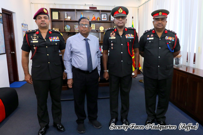 The newly appointed Commander, Security Forces (Jaffna) Major General KTP De Silva RSP ndu psc, engaged in courtesy visit within the Jaffna region on 03 February 2026. During the visit Commander Security Forces (Jaffna) met with Mr. N Vethanayahan - Honourable Governor of the Northern Province and Mr. M Piratheepan, District Secretary of Jaffna at their offices respectively.