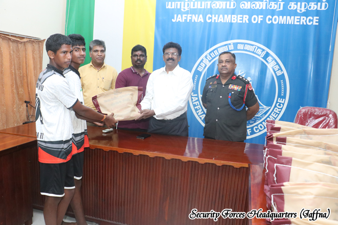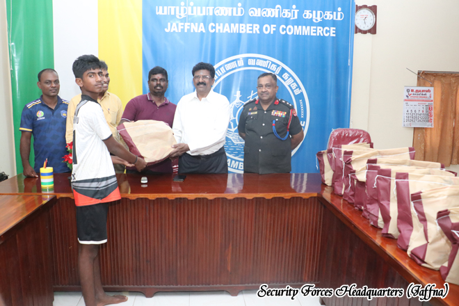 School players who represent school football team of J/Pungudutivu Central College received nutritional dry ration packs and the donation was facilitated by the Jaffna Chamber of Commerce. Colonel WMAM Nissanka, Chief Coordinator Civil Affairs, coordinated the event.