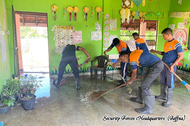 52 Infantry Division troops under the supervision of Security Force Headquarters (Jaffna) conducted multiple disaster-response and public-health operations across the area of responsibility on 05 December 2025.