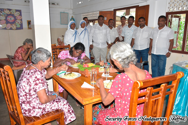 In align with the Vesak Festival General Officer Commanding 51 Infantry Division carried out special community welfare initiative at “Mother Teresa Elders' Home”, Irupalai, Kopay and “Karunalayam Child Home”, Thirunelvely on 13 May 2025. The Programme included cleaning programme to enhance the living standard of the residents, followed by a heart worming gesture of offering special alms - giving to senior citizens and child.