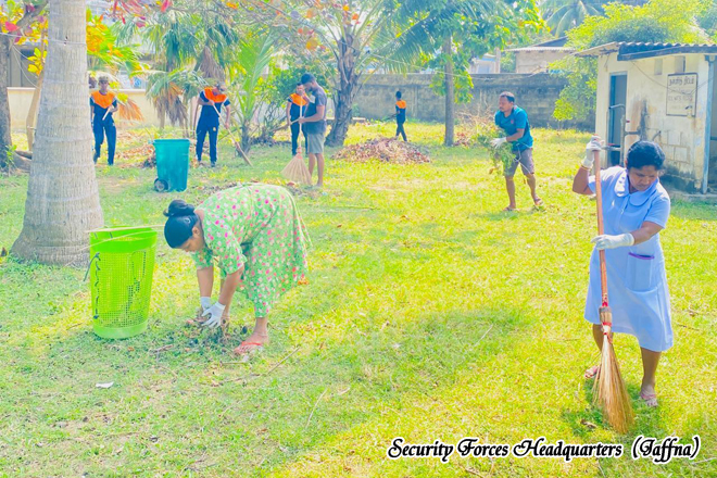 In accordance with the concept of the Clean Sri Lanka programme implemented by the present government and with the objective of strengthening relations with the Tamil community in conjunction with the 78th National Independence Day through a civil–military coordination programme a cleaning and sanitation programme was conducted at the Valvettithurai Regional Hospital premises.