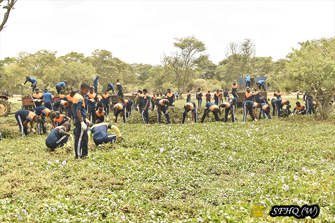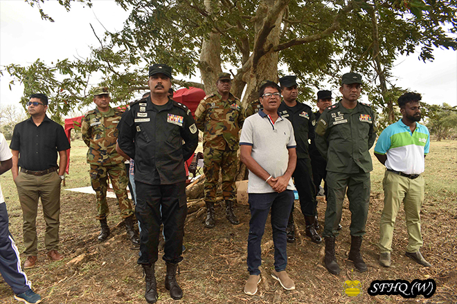In parallel with the Clean Sri Lanka Programme, together with the “Wildy Tuskers” Organization and under the full supervision of Brigadier B.A.M.P. Balasuriya RSP, Commander of the 212 Infantry Brigade, the third consecutive day of the program was carried out at the Bund of Balalu Tank on 07 September 2025 from 0900 hrs to 1300 hrs. During this program, invasive plants such as Agada and Japan Jabara, which obstructed the lifestyle of elephants, were removed from an extent of approximately 4 to 5 acres.