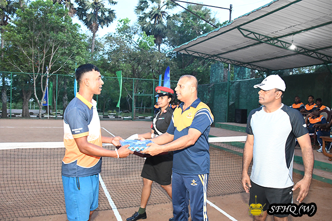 A highlight of the event was a special exhibition match featuring the Brigadier Admin and Quartering of SFHQ (Wanni), the Colonel General Staff of SFHQ (Wanni), and combing with Army tennis players.