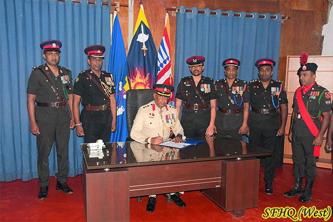 To commemorate the occasion a group photograph was taken followed by the symbolic planting of a sapling. Colonel E A U A Amarasekara RSP subsequently addressed the troops emphasizing the importance of discipline and outlining his key expectations and the responsibilities associated with their duties.