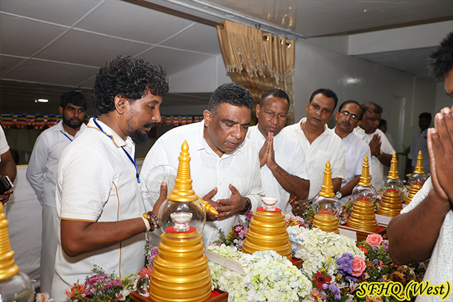 ආරක්ෂක සේනා මුලස්ථානය (බටහිර) ආඥාපති මේජර් ජෙනරාල් යූ කේ ඩී ඩී පී උඩුගම ආර්ඩබ්ලිව්පී ආර්එස්පී යූඑස්පී එන්ඩීසී පීඑස්සී යන ජ්යෙෂ්ඨ නිලධාරිගේ මඟ පෙන්වීම යටතේ, ආරක්ෂක සේනා මූලස්ථානය (බටහිර) රාජකාරි නියතු භට පිරිස්, ශ්රී ලංකා යුද්ධ හමුදා බෞද්ධ සංගමය සහ ‘ශ්රී සමන් මෙත් සංසදයේ’ සාමාජිකයින් සමඟ එක්ව, 2025 මැයි 12 සහ 13 යන දිනවල පනාගොඩ බෝධිරාජාරාමය යුද්ධ හමුදා විහාරස්ථානයේදී ශ්රී සුවඳ කුටිවල තැන්පත් කර ඇති සර්වඥ ධාතූන් වහන්සේ සහ ශ්රාවක ධාතූන් වහන්සේ වන්දනාමාන කිරීමට මහජනතාවට අවස්ථාවක් ලබා දෙන ලදී.