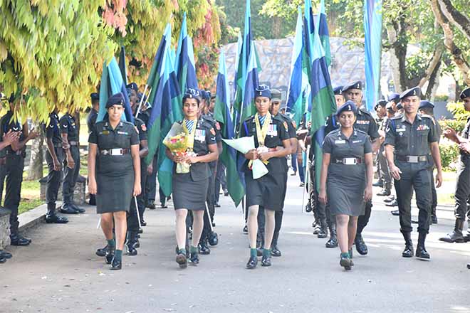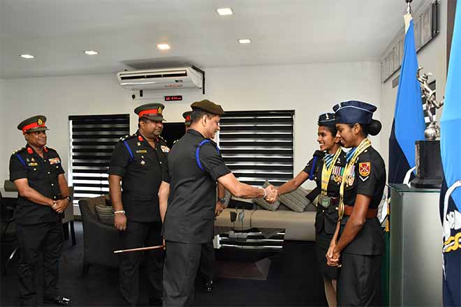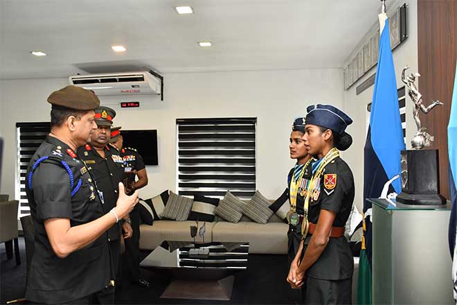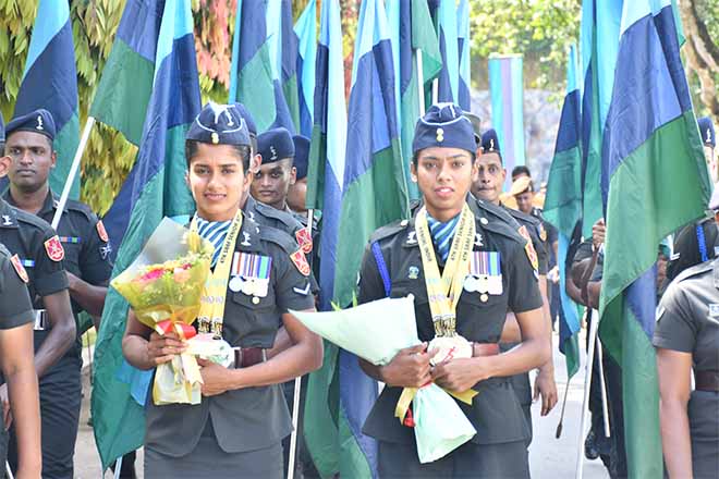 The Regimental Headquarters of the Sri Lanka Signal Corps was filled with pride and celebration as the corps paid tribute to two of its exceptional athletes this morning, the Colonel Commandant of the Corps welcomed and honoured two of its outstanding athletes, Lance Corporal M Y F Safiya and Lance Corporal D T A De Silva for their outstanding achievements at the 4th south Asian Senior Athletics Championship 2025 held in Ranchi, India. Their stellar performances, which brought international recognition and glory to both the Sri Lanka Army and the nation, were honoured in a grand felicitation ceremony graced by the Colonel commandant of the Sri Lanka Signal Corps.