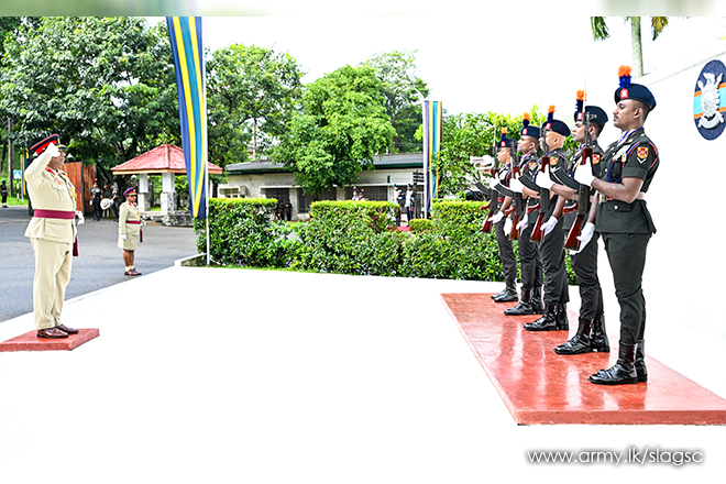 නියෝජ්ය මධ්යස්ථාන සේනාවිධායක රෙම ශ්රීලයුපොදුසේබ Colonel ඩබ්ලිව් ටී ඒ එස් පෙරේරා ජ්යෙෂ්ඨ නිලධාරිණීය විසින් නව මධ්යස්ථාන සේනාවිධායක තුමන් මහත් හරසරින් පිළිගත් අතර, කදවුරු සම්මාන මුරයෙන් අනතුරුව රෙජිමේන්තු රණවිරු ස්මාරකයට පුෂ්පෝපහාර දැක්වූ පසු, සම්මාන පෙලපාළියක් ජ්යෙෂ්ඨ නිලධාරි වෙත පිරිනමන ලදි.