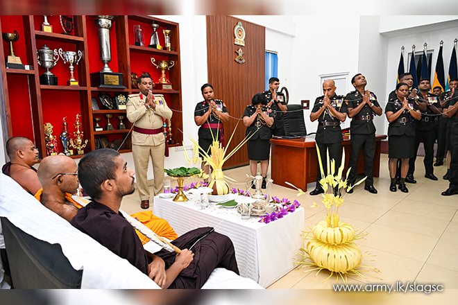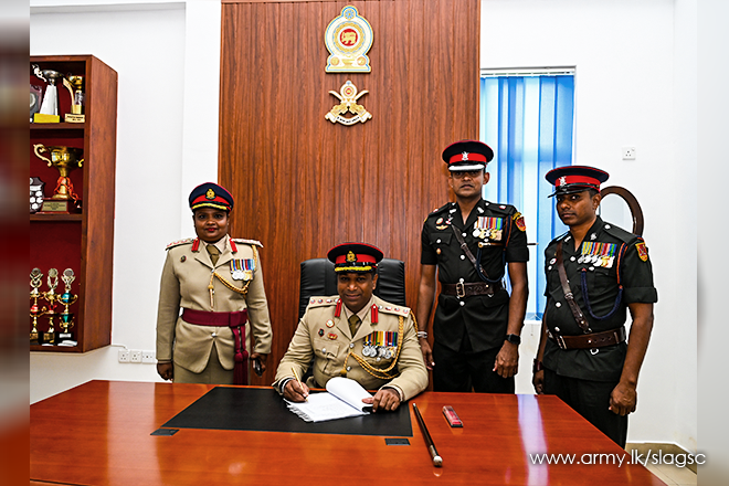 නව මධ්යස්ථාන සේනාවිධායක සිය කාරයාලයේ ආගමික වතාවත් මධ්යයේ රාජකාරි භාර ගැනීම සනිටුහන් කරමින් සංකේතාත්මකව නිල ලේඛනයට අත්සන් තැබීය. Colonel සී එස් දේමුණි ජ්යෙෂ්ඨ නිලධාරිතුමන් රෙජිමේන්තු මධ්යස්ථාන කාර්්ය මණ්ඩලය සහ අණදෙන නිලධාරීන් සමඟ සමූහ ඡායාරූපයකට පෙනී සිටි අතර, අවසානයේ නිලධාරීන් සහ සෙසු නිලයන් සමඟ සියලු නිල තේ පැන් සංග්රහයකට සහභාගී විය.