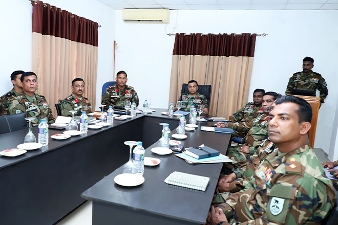 On arrival, the Commandant was accorded with a drive past salutation, and he was warmly received by Lieutenant Colonel M W Vishvamithra psc, the Commanding Officer of the 7 (V) SLAC. Following the initial formalities, the Commanding Officer of the 7 (V) SLAC delivered a detailed briefing on the regiment's current undertakings and operational activities.