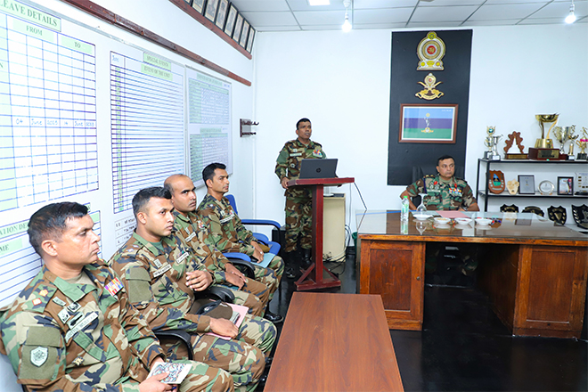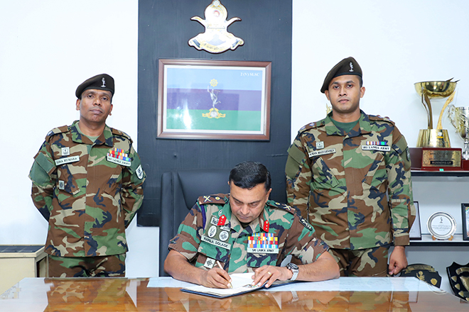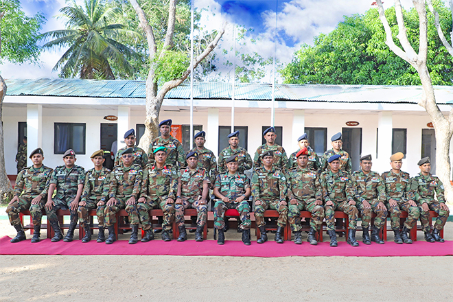 Later on, to mark the visit, the senior officer posed for a photograph together with the officers and the other ranks of the unit. Further, to commemorate his visit, Major General D K S K Dolage USP nps psc recorded his appreciation in the Visitors’ Book.