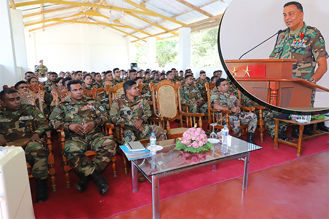 Subsequently, the Commandant SLAVF addressed the troops at the Lecture Hall. During his address, he mainly focused on the role of a soldier, highlighting his duties, responsibilities, and accountability within the military context. Further, the Commandant specifically emphasized the importance of the Government-led “Clean Sri Lanka” initiative, which aims to promote a sustainable future through transformative attitudes, ethical values, and committed service.