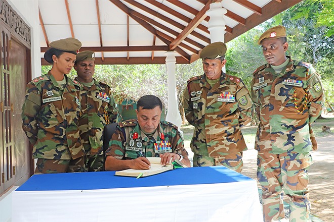 Major General D K S K Dolage USP nps psc, the Commandant Sri Lanka Army Volunteer Force, visited 3(V) SLACAL located at Kandakadu in the afternoon on 12 June 2025. Following the drive past salutation, he was warmly received by Lieutenant Colonel B M T N Bandara psc SLA, the Commanding Officer of 3(V) SLACAL.