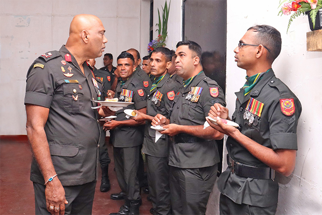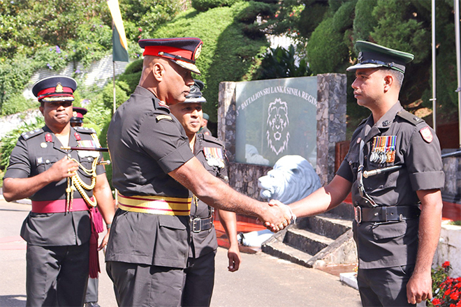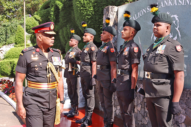 Major General Janith Bandara was accorded a Guard Turnout by the troops of the Sri Lanka Sinha Regiment, and warmly welcomed by Major N Rathnayake, the Commanding Officer of the 3 (V) SLSR.