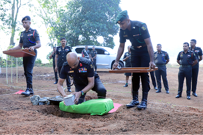LAYS CORNERSTONE TO CONSTRUCT ACCOMMODATION COMPLEX AT SRI LANKA ARMY VOLUNTEER FORCE