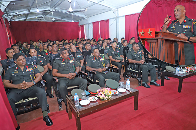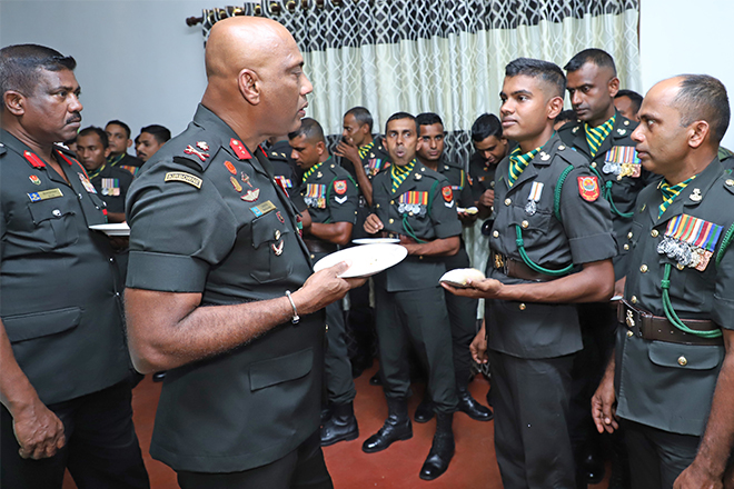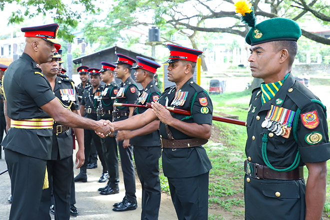 Heading to the core feature of the day’s itinerary, the Deputy Commandant addressed the troops emphasizing the urgent need of combat discipline for preventing drug addiction, and unethical behavior that tarnish the Army’s reputation. Further, he stressed the importance of genuine engagement in functioning process of the establishment with military excellence intensively upholding the Army’s traditions with loyalty, integrity, commitments and professionalism. A cross section of the 5th (Volunteer) Battalion of the Sri Lanka Light Infantry, 2nd (Volunteer) Battalion of the Sri Lanka Sinha Regiment and the Sri Lanka Army Ordnance Corps attended the address of the Deputy Commandant.