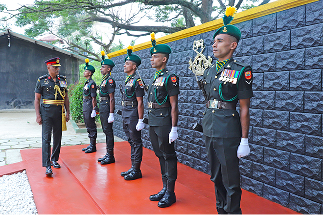 On arrival, the Deputy Commandant was accorded with a Guard Turnout, and he was warmly received by Lieutenant Colonel W M G L P Weerakoon, the Commanding Officer of the 1 SLRC.