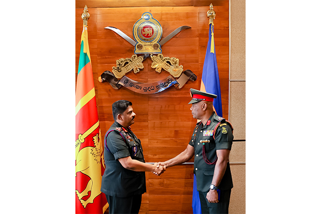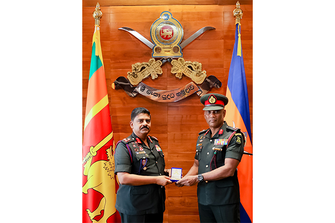 Major General B M R J Bandara who was recently promoted to a two-star General paid a courtesy call on the Commander of the Army, Lieutenant General Lasantha Rodrigo RSP ctf - ndu psc IG, on 16th April 2025 at the Army Headquarters.