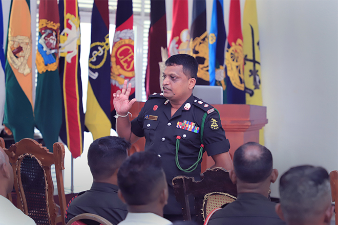 The lecture was resourced by Lieutenant Colonel P A G A P Madiththapola GW who performs as the General Staff Officer 1 (Training) of the HQ SLAVF. The lecture got underway with the close supervision of Brigadier B J Lakamge KSP, the Inspector of Training of the Volunteer Force. The occasion was attended by officers and other ranks of the Headquarters in the Volunteer Force.