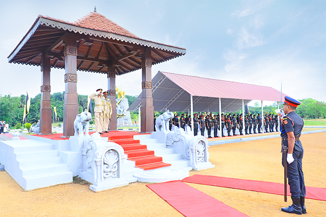 In complying with the military formalities, the outgoing Commandant was ushered by the Deputy Commandant SLAVF to the saluting dais to receive the Guard of Honour awarded by the Sri Lanka National Guard amidst patriotic melodies in the air.