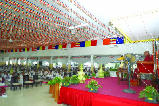 A large number of devotees participated in the day’s agenda, consisted of bodhi pooja, meditation practices, observances, and recital of ‘Pirith Sutta’.The Seela Programme included with the sermons, delivered by Venerable Athungama DharmajeewaThero, Venerable Kukulpane Sudassi Thero, Walasmulla Jinarathana Thero,Venerable Vajirabudhdha Thero, Dodampe SaddhawimalaThero and Dodamkumbure Sumanajothi Thero. The meditation programme was conducted by Venerable Iddamalgoda Vajiragnana Thero.