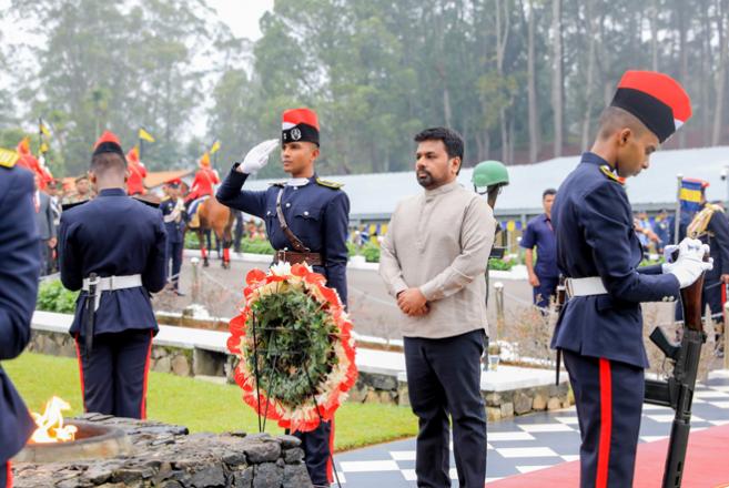 On 21 December 2025, the historic 100th Passing Out Parade was ceremonially conducted at the Sri Lanka Military Academy. Upon arrival, the Chief Guest, His Excellency Anura Kumara Dissanayake, President of the Democratic Socialist Republic of Sri Lanka, laid a wreath at the Monument of Peace, paying floral tribute to the fallen heroes. During the Parade, a total of 240 Officer Cadets including eight locally trained foreign cadets (four from the Republic of Zambia, two from the Republic of Rwanda, one from the Republic of Uganda, and one from the Republic of Zambia) and four PMA-trained local Officer Cadets were awarded the President’s Commission in the presence of the Deputy Minister of Defence, Major General KP Aruna Jayasekara (Retd) WWV RSP VSV USP ndc psc, the Secretary to the Ministry of Defence, Air Vice Marshal Sampath Thuyacontha (Retd) WWV, RWP and two Bars, RSP and Bar USP, MMSc (Strat Stu-China), MSc (Def Stu) in Management, MSc (Def & Strat Stu) fndu (China) psc, the Commander of the Army, Lieutenant General Lashantha Rodrigo RSP ctf-ndu psc IG, the Commander of the Navy, the Commander of the Air Force, the Inspector General of Police, former Army Commanders and Commandants of the SLMA, and many local and foreign dignitaries including Defene Attaches of friendly foreign countries. The commissioned Officer Cadets comprised 71 from Regular Intake 93 who completed a two-year and nine-month Bachelor’s degree programme, 109 from Regular Intake 94B, 33 from Intake SC 23, 8 from Regular Lady Intake 20 along with 2 PMA-trained Lady Cadets, 14 from Volunteer Intake 62 and 3 from Volunteer Lady Intake 19, all of whom successfully completed the prescribed military training packages at the SLMA. During the 100th Commissioning Parade, the Gannoruwa Company ceremonially handed over the Champions Flag to the Vijithapura Company, which was officially recognized as the Best All-Round Company for 2025 by the Chief Guest, His Excellency the President.