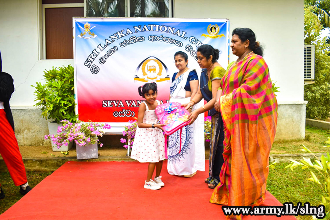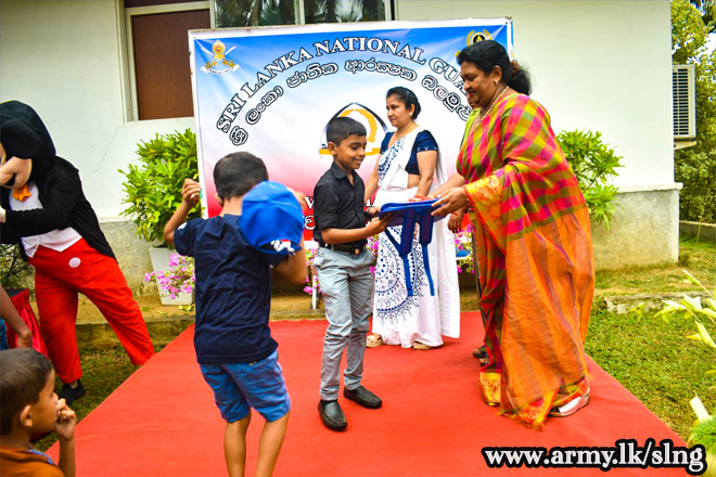 The event was graced by the President of the SLNG Seva Vanitha Branch, Mrs. Kumarie Pallekumbura, as the Chief Guest, whose presence and kind interaction with the children made the day even more special. Senior members of SLNG Seva Vanitha Branch, Several senior officers,officers including the Colonel of the Regiment and the Centre Commandant, also attended the programme, further highlighting the unity and care within the SLNG family.
