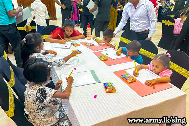This meaningful event was held under the initiative and guidance of the Colonel of the Regiment, Major General P K W W M J S B W Pallekumbura RWP RSP ndu psc, and aimed at bringing joy, love, and laughter to the children and families of the SLNG Regimental Centre and battalions,living around the Kurunegala area.