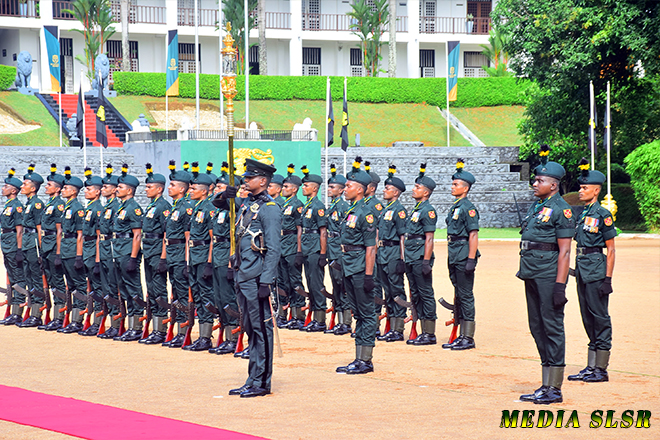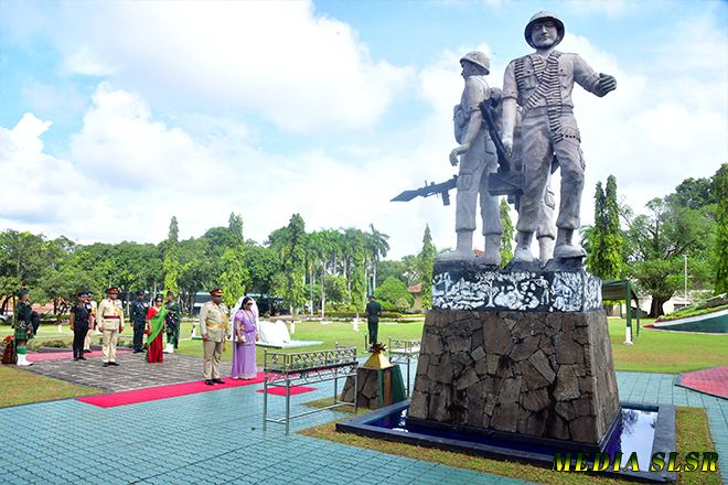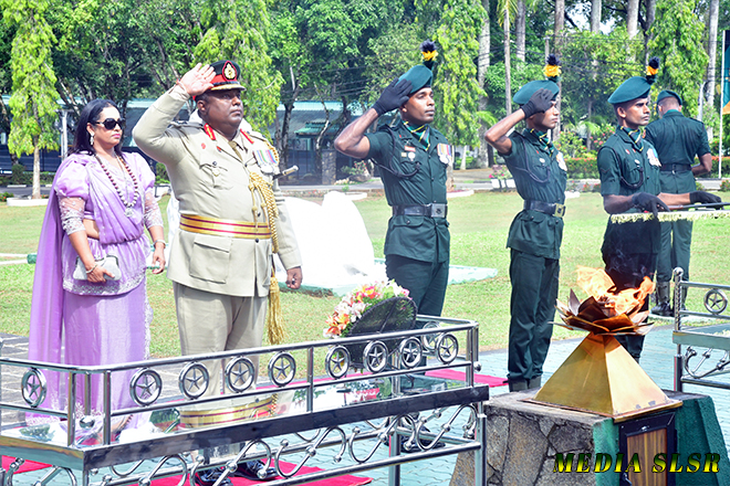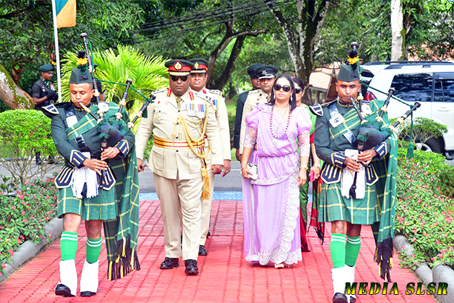 රෙජිමේන්තු මධ්යස්ථානය වෙත සපැමිණි ජ්යෙෂ්ඨ නිලධාරි ප්රධාන දොරටුව අභියසදී පිළිගෙන කඳවුරු සම්මාන මුරයක් පුදකරනු ලැබීය. ඉන් අනතුරුව රෙජිමේන්තු මධ්යස්ථාන සේනාවිධායක බ්රිගේඩියර් එච් ඒ අයි පෙරේරා ආර්ඩබ්ලිව්පි ආර්එස්පි යුඑස්පි එන්ඩිසී ජ්යෙෂ්ඨ නිලධාරි සමඟ සම්මාන පෙලපාලියේ ආචාරය පිළිගැනීමෙන් පසු ශ්රී ලංකා සිංහ රෙජිමේන්තු රණවිරු ස්මාරකයේ දී මාතෘ භූමිය වෙනුවෙන් තම දිවි දුන් රණවිරුවන් සිහිකර පුෂ්පෝපහාර පුදකිරීමට සහභාගි විය.